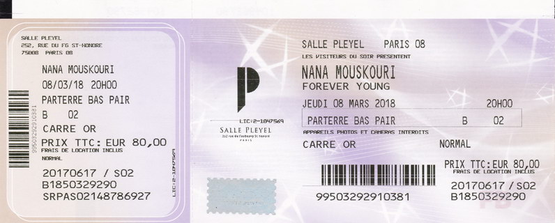| 08.03.2018 | Paris | Salle Pleyel | F | Ticket | O | |||