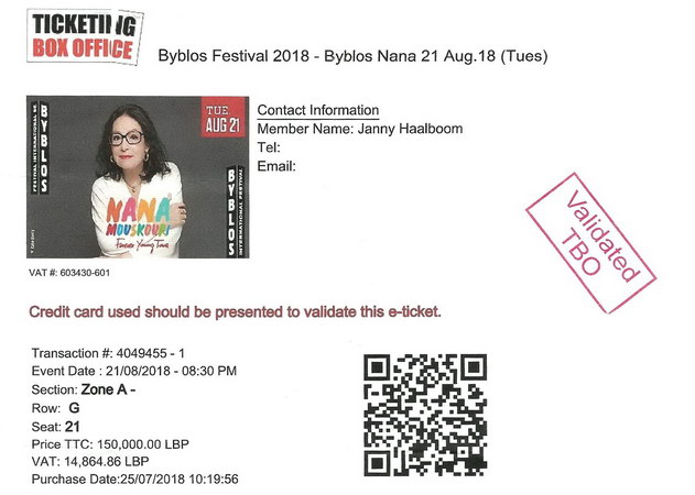 | 21.08.2018 | Byblos | Jbeil - Port Lebanon | RL | Ticket | C | |||