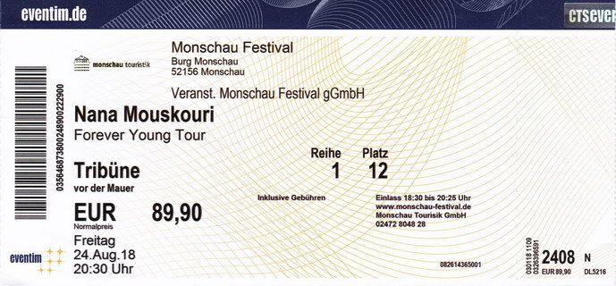 | 24.08.2018 | Monschau | Burg Monschau, Freilichtbühne | D | Ticket | O | |||