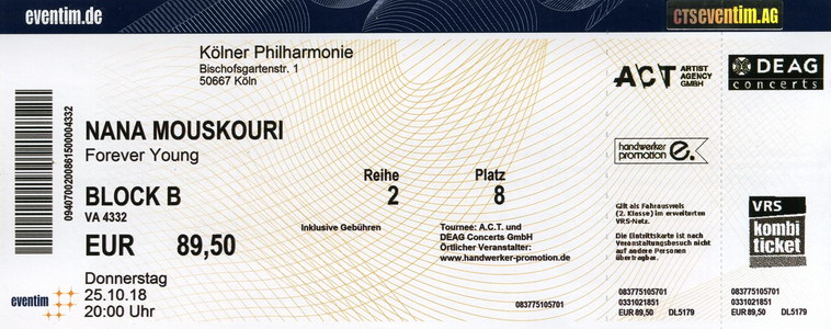 | 25.10.2018 | Köln | Philharmonie | D | Ticket | O | |||