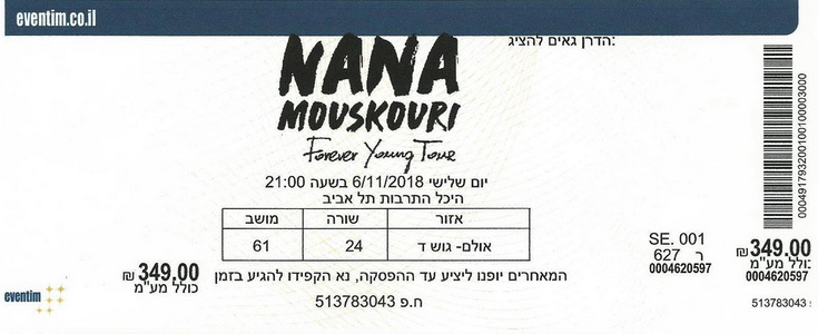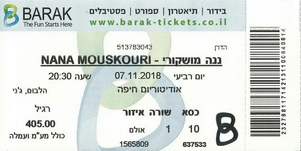 | 06.11.2018 | Tel Aviv | Heichal Hatarbut | IL | Ticket | C | |||