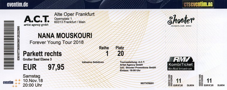 | 10.11.2018 | Frankfurt | Alte Oper | D | Ticket | O | |||