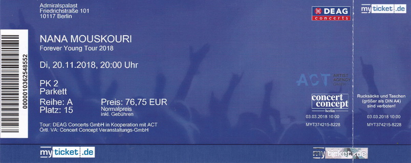 | 20.11.2018 | Berlin | Admiralspalast | D | Ticket | O | |||