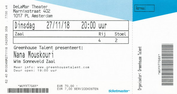 | 27.11.2018 | Amsterdam | DeLaMar Theater | NL | Ticket | O | |||